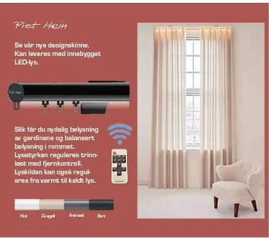 Til høyre ser du Piet Hein dekorskinne som kan leveres med innebygget LED-lys.