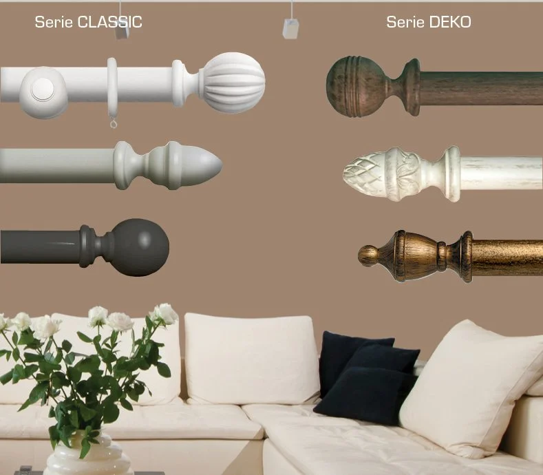 Og i serien Deco kan du finne flotte dekorative gardinstenger, som er malt i fargene Antikk sort, Antikk gull og Offwhite med gull.