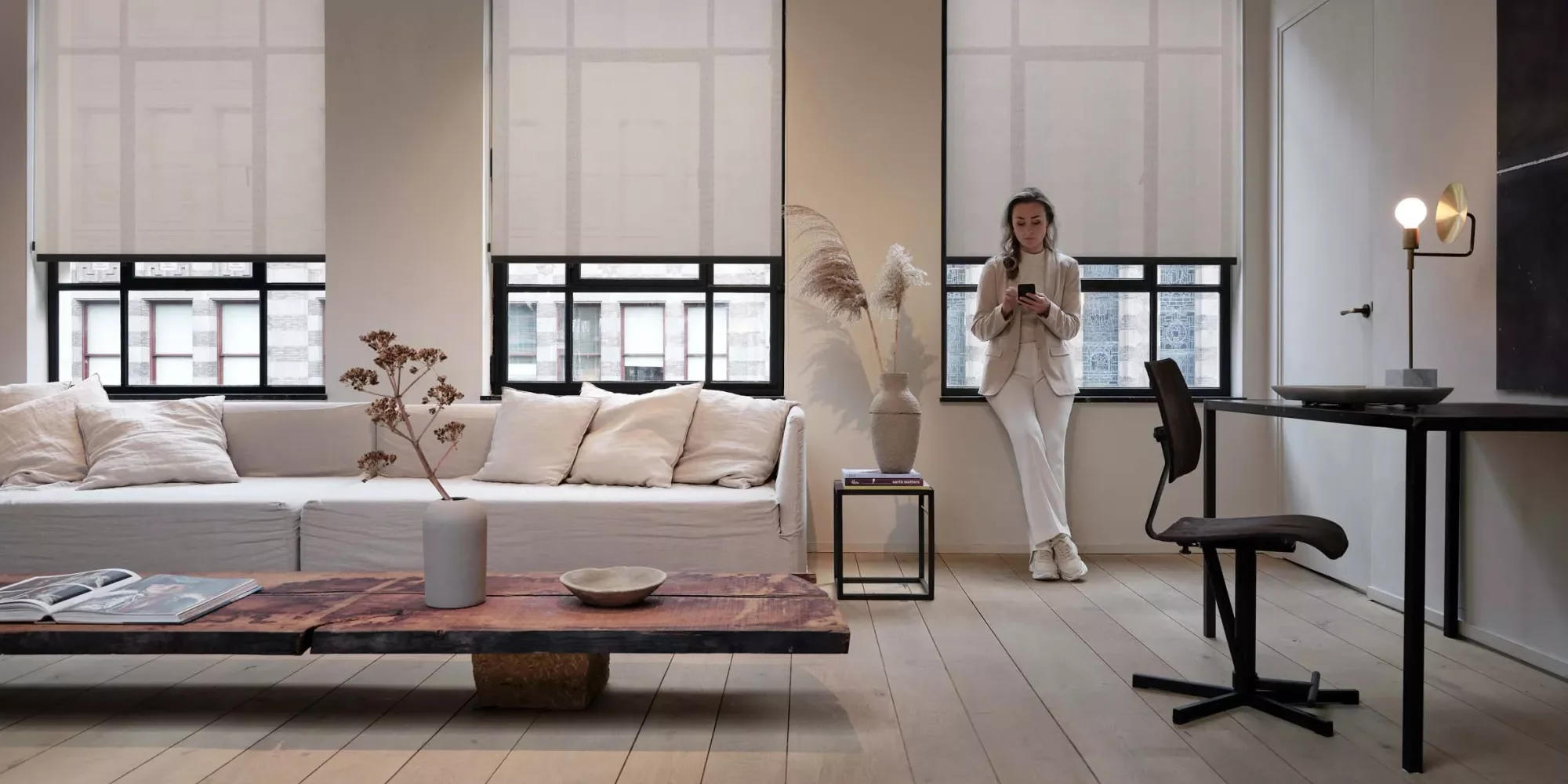 Motionblinds passer like godt i private hjem som i større prosjekter. Løsningen finnes både som batteridrevet og kablet variant, og kan tilpasses ulike rom og behov.